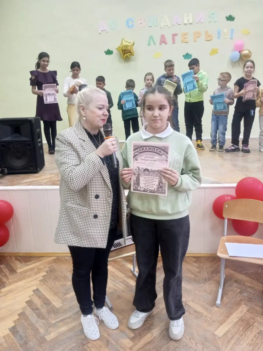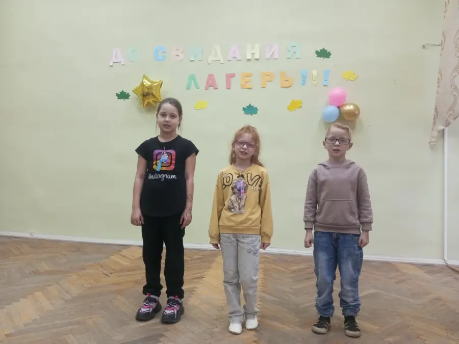"До свидания,лагерь!". В воспитательно-оздоровительном лагере "Радуга" 08.11.2025 прошла игровая программа "До свидания лагерь!". Последний день лагеря, как и первый, всегда очень волнительный. Ребята подготовили концертную программу. Ах, как было весело и задорно! За пять дней в лагере ребята научились работать дружно и сообща. Ощущалось сплочение коллектива и праздничная атмосфера. Ведь дружба - это великая сила, которая помогает творить чудеса. Весь день звучали песни и стихи о дружбе.