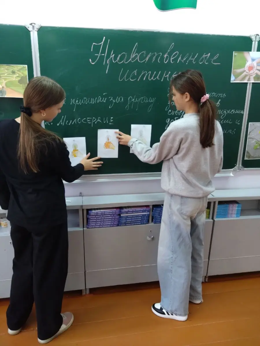 Ребята активно участвовали в дискуссии о вещах, которые не имеют формулы как в математике, и не описываются законами, как в физике и это - нравственные ценности и истины. Выяснили где источники нравственных истин, их построение и какая будет жизнь без этих ценностей.