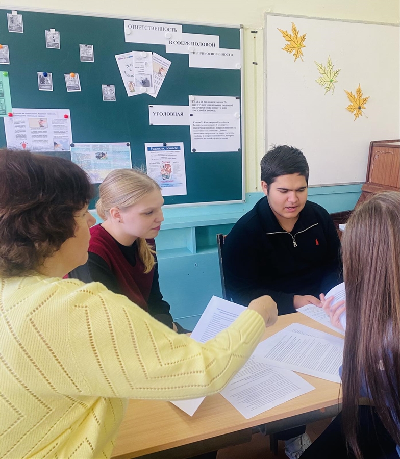 Для учащихся 10-11 классов 22.11 прошел практикум «Ответственность за преступления против половой неприкосновенности или половой свободы личности». Ребята узнали о том, как защищаются их права в области половой неприкосновенности, что такое половая свобода и как можно противостоять насилию против личности. Совместно был выработан алгоритм «5 НЕЛЬЗЯ»и «как сказать НЕТ»,что поможет в будущем противостоять насилию сохранить здоровье, а порой, и жизнь.