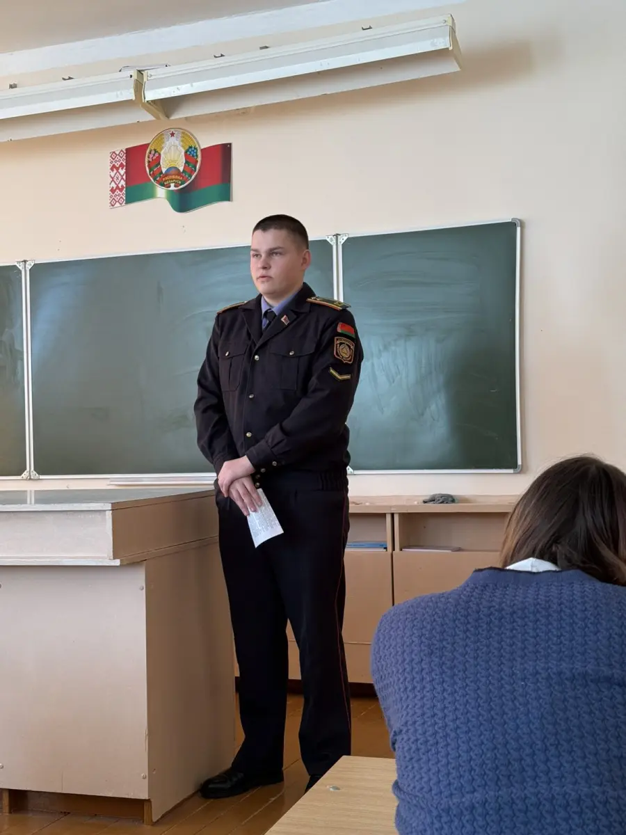 3 февраля 2026 с учащимися нашей школы была проведена профориентационная беседа по поступлению в УО "Академия МВД Республики Беларусь". Перед ребятами выступил выпускник нашей школы, а ныне курсант академии Егоров Кирилл.
