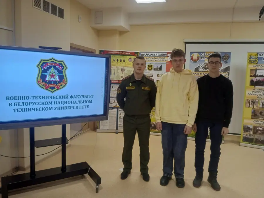 22 ноября 2025 на базе ресурсного центра допризывной подготовки ГУО "Средней школы 25" прошла профориентационная встреча с майором Богодяжом А. П. Северо-заподного оперативного командования, в которой приняли участие юноши 11-го класса нашей школы. В ходе беседы ребятам рассказали об условиях поступления в БНТУ на военно-технический факультет, о специальностях, о сроках обучения и экзаменах, а также о жизни курсантов в университете.