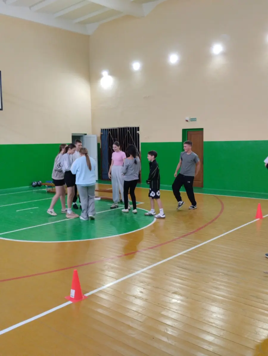 В рамках шестого школьного дня в учреждении образования проходит спортландия "Спорт против алкоголя и табакокурения". Ребята заряжены позитивом и яркими впечатлениями, желанием победить, активно отвечают на вопросы против команды- соперника.