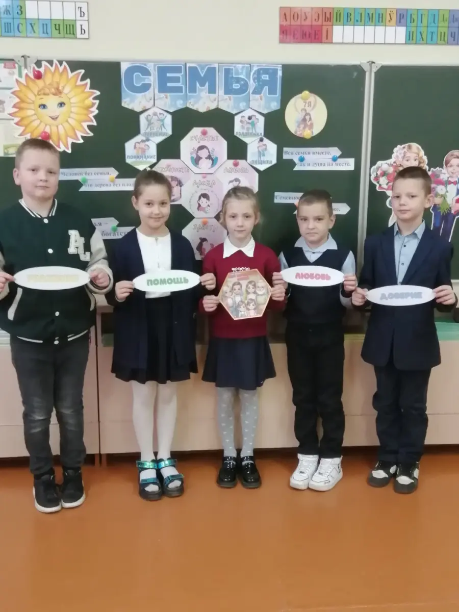 «Счастливая семья - это…». Под таким названием в нашем учреждении образования прошло мероприятие для младших школьников. Ребята научились выражать свои чувства и мысли о своей семье. Учащиеся отвечали на вопросы викторины, разгадывали ребусы, вспомнили пословицы про семью. В конце мероприятия каждый из ребят выбрал самое главное для своей семьи.